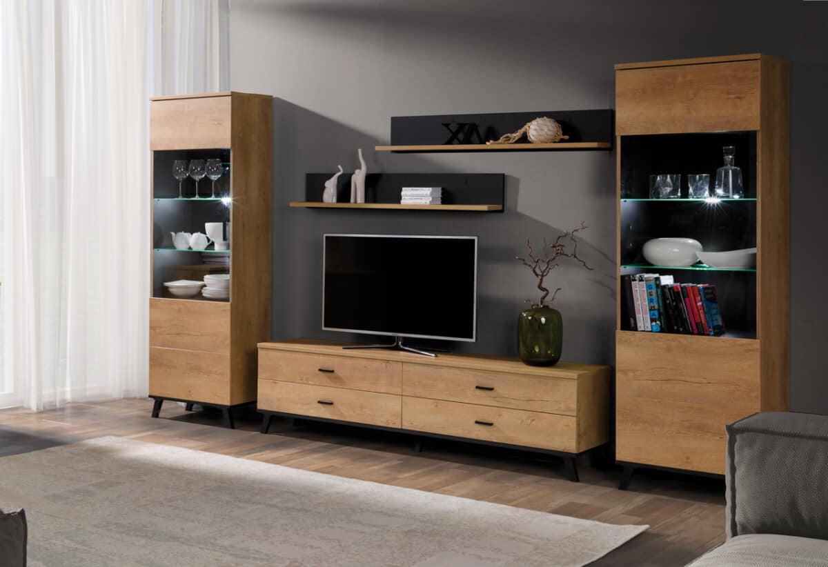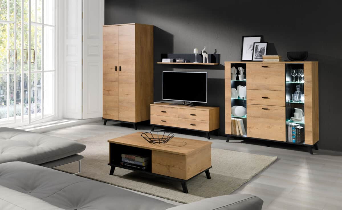 Wardrobe, Glass door cabinet, Chest of drawers with glass doors, Chest of drawers (1), Chest of drawers (2), TV units, TV units – small, Coffee tables, Hanging shelves, Shelf