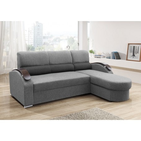- Width - 235 cm - Height - 97 cm - Sleeping area - 128 cm x 200 cmDescription:- Sleeping function High-quality sofa bed, made of polyurethane foam T30 - The sofa bed has a WOODEN FRAME, ensuring stability and long years of use. - Containers for bedding under the mattress - you can conveniently put bedding inside. - Pillows included in the price of the sofa bed. - Easy opening mechanismTechnical data: - The composition of the filling - polyurethane foam T30 - Frame material - wooden frame, furniture boardAdditional information